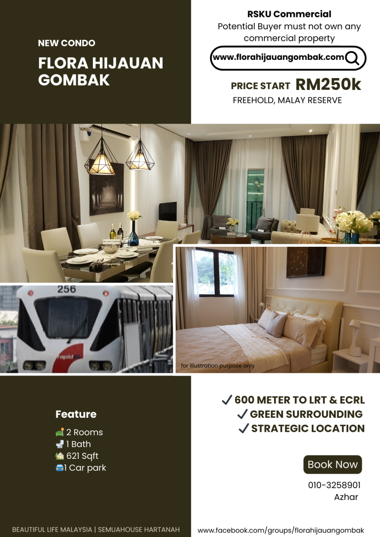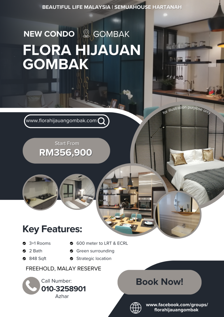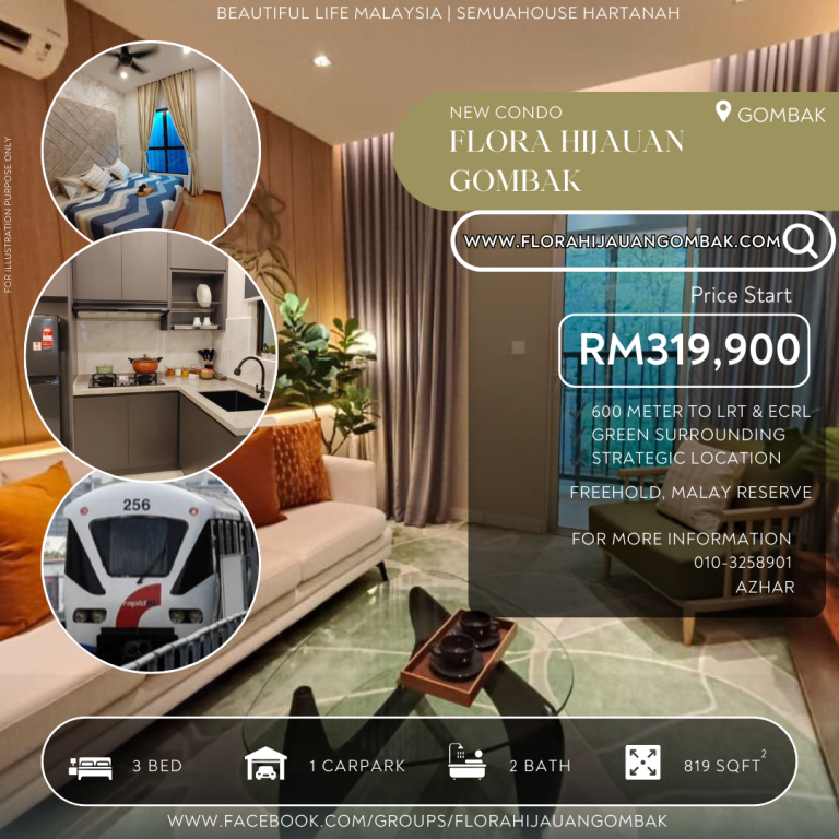 Impikan keselesaan dan ketenangan di kaki bukit, dengan kemewahan dan kemudahan LRT dan ECRL. Pelaburan hartanah yang membina masa depan. Semua dalam harga mampu milik. Jumpa anda di Flora Hijauan Gombak